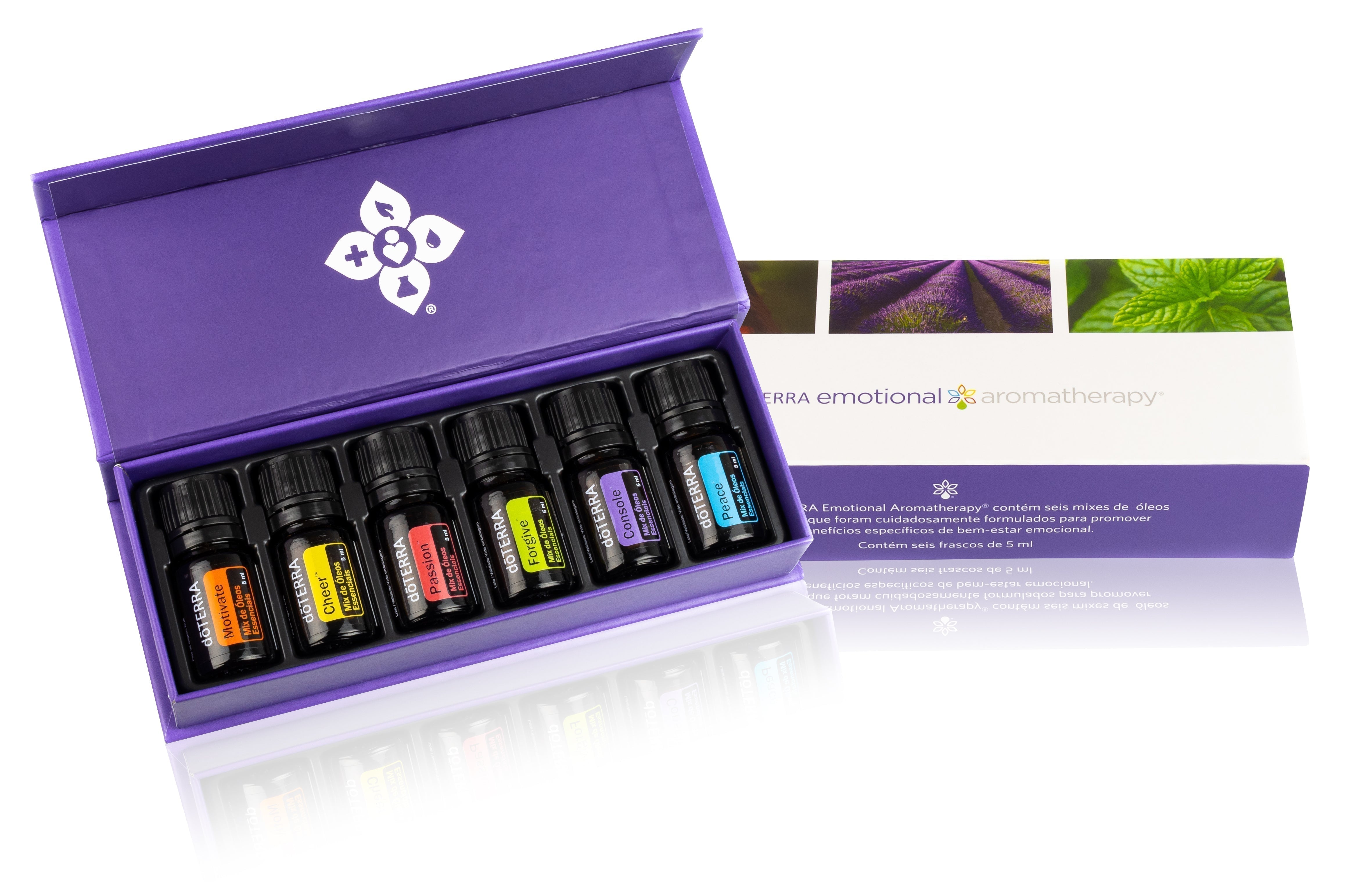 Kit com seis mixes de óleos essenciais especialmente formulados para dar apoio às varias emoções que sentimos em nosso dia-a-dia. Contém seis frascos de 5 mL:doTERRA Cheer